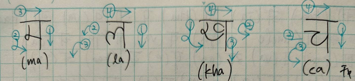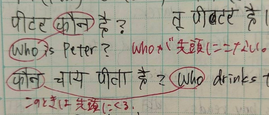 最初は文字の書き順、発音の学習を一か月ほど続けました。リスニングが苦手な私には、ka (क)/kha (ख)、ga (ग)/gha (घ)、ta (त)/tha (थ)/Ta (ट)/Tha (ठ)など似た発音の聞き取りに大苦戦。それでもアルファベットではない文字に興味があるのでわりと楽しくできました。