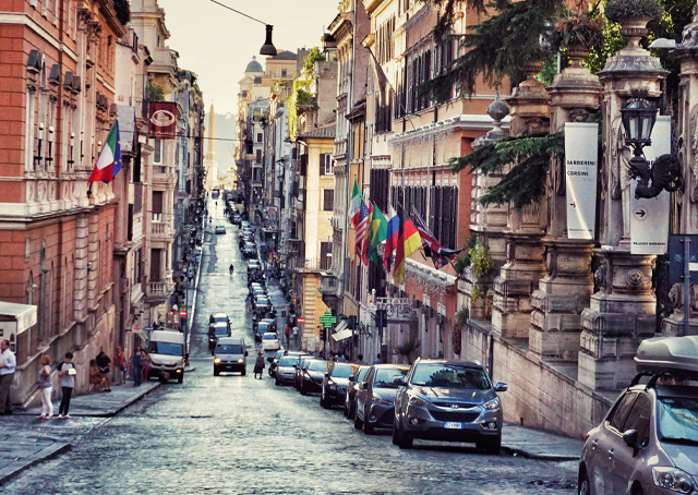 もう何年も前のことです。まだ電気自動車が全く走ってなかったようなころに、通勤でバスをつかっていました。終点の駅に到着して歩道から少し離れたところに止められ、外に降りた瞬間に前のバスの排気ガスのにおいとともに、路上喫煙者の煙が襲ってきて、思わず顔をそむけたのでした。その時急に思い出したのです、イタリアのローマを。